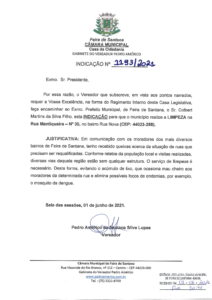 Após receber diversas queixas dos moradores da rua Mantiqueira, no bairro Rua Nova, Pedro Américo através da indicação 1193/2021 reivindicou a limpeza do local para dar maior conforto aos moradores da região.