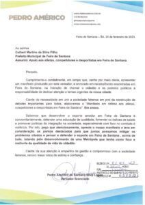 Vereador Pedro Américo cobra novamente ao prefeito Colbert Martins Filho, uma resposta ao manifesto em defesa dos atletas, competidores e desportistas em Feira de Santana.