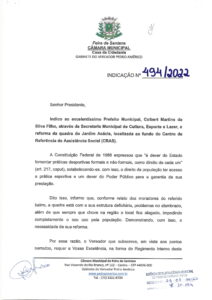 Segundo relatos dos moradores do bairro Jardim Acácia a quadra está com sua estrutura deficitária, com isso, o vereador Pedro Américo faz indicação ao prefeito Colbert para realizar a reforma da quadra.