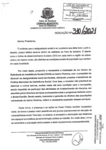 Com o propósito de facilitar a vida dos moradores do bairro, Vereador Pedro Américo fez a indicação 310/2021 ao Prefeito Colbert Martins para que seja implantado um Centro de Referência de Assistência Social (CRAS) no bairro Viveiros.