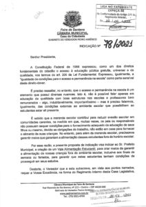 Para criar meios de garantir a alimentação das crianças fora do ambiente escolar, incluindo os feriados e finais de semana, O Vereador Pedro Américo através da indicação 78/2021 solicitou ao Prefeito Colbert Martins a criação de Vale alimentação estudantil.