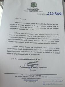 Pedro Américo indica iluminação de led no São João do Cazumbá