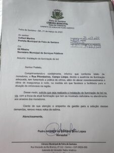 Pedro Américo indica instalação de iluminação led na rua Pitombeiras
