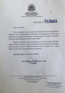 Pedro Américo indica realização de mapeamento dos esquipamentos culturais, rurais e urbanos, públicos ou particulares de responsabilidade da administração pública