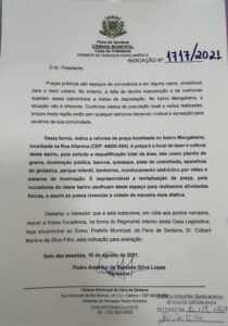 Pedro Américo indica reforma da praça localizada na rua Altamira