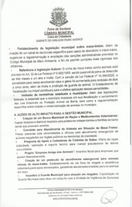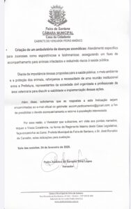 “Cuidar dos animais também é cuidar das pessoas. Precisamos de ações concretas e uma política permanente”, enfatizou o vereador.