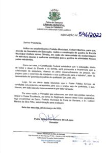 Com a indicação 546/2022 o Vereador Pedro Américo solicitou a construção da quadra, em razão da necessidade da modernização da estrutura escolar e melhores condições para a prática de atividades físicas dos estudantes da Escola Municipal Antônio Alves Oliveira, bairro Asa Branca.