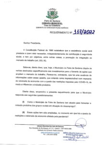 Diante as restrições impostas pela pandemia do Covid-19, Pedro Américo através do requerimento 117/2021 questiona ao prefeito Colbert Martins qual medida será tomada para fomentar a inclusão produtiva dos grupos sociais em situação de desemprego.
