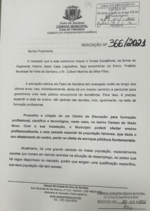 Pedro Américo solicita a criação de Educação para formação profissional, científica e tecnológica, no bairro Campo do Gado Novo