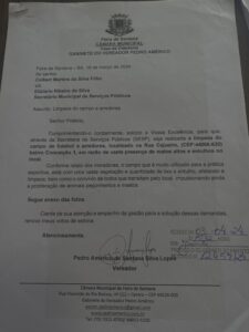 Pedro Américo solicita requalificação de drenagem e pavimentação da Praça União