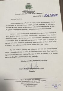 Pedro Américo solicita trator para aragem de terra da comunidade de Terra Dura