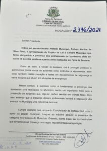 Pedro Américo solicita a obrigatoriedade da presença de bombeiros civis em eventos públicos e particulares