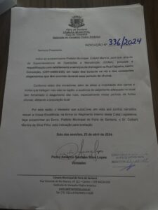 Pedro Américo solicita a requalificação com asfaltamento e serviços de drenagem na Rua Cajueira