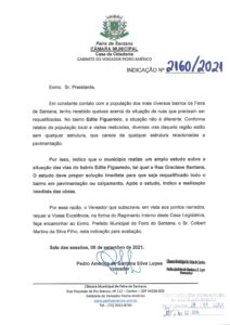 Pedro Américo através da indicação 2160/2021, solicita um amplo estudo sobre a situação das vias do bairro Edite Figueredo, tal qual a rua Graciane Santana, para que seja requalificado com pavimentação ou calçamento.