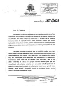 Conforme a indicação 367/2021 feita ao prefeito Colbert Martins, o Vereador Pedro Américo solicita a realização de um amplo estudo sobre a situação das vias do bairro Campo do Gado Novo.
