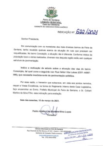Foi feita indicação ao prefeito Colbert Martins solicitando com urgência a pavimentação asfáltica da rua Heitor Villa Lobos, no bairro Conceição.