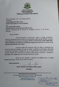 Pedro Américo solicita drenagem da rua 12 de outubro