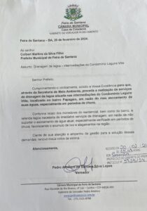 Pedro Américo solicita drenagem na lagoa situada nas intermediações da Cond.Lagune Ville