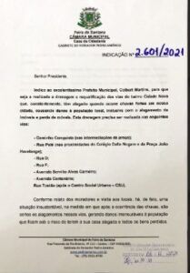 O vereador Pedro Américo solicitou através de Oficio enviado à Prefeitura de Feira de Santana, a realização das obras de drenagem no Caminho Conquista, bairro Cidade Nova.