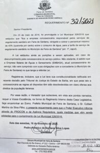 Pedro Américo solicita esclarecimentos sobre esgotamento sanitário no município