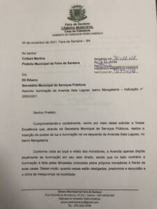 Pedro Américo solicita iluminação na via esquerda da Av Sete Lagoa