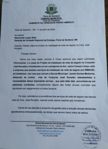 Pedro Américo solicita informações do projeto de rede de esgoto