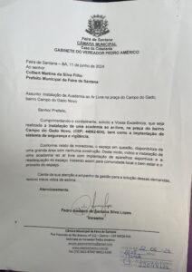 Pedro Américo solicita instalação de academia ao ar livre na praça do Campo do Gado Novo