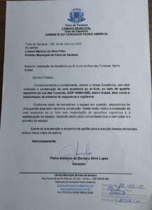 Pedro Américo solicita instalação de Academia ao Ar Livre na rua das Tuneiras