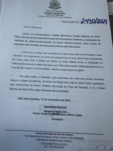 Pedro Américo solicita instalação de câmeras de videomonitoramento no Serraria Brasil