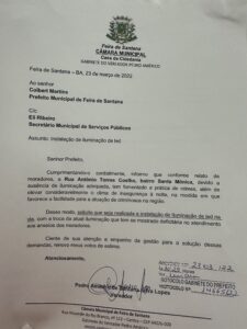 Pedro Américo solicita instalação de iluminação de LED na rua Antônio Torres Coelho