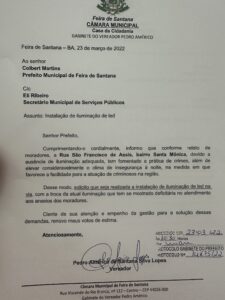 Pedro Américo solicita instalação de iluminação LED na rua São Francisco de Assis