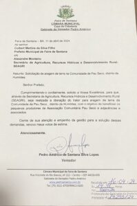 Pedro Américo solicita liberação de trator para aragem de terra na Comunidade de Pau Seco, distrito de Humildes