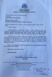 Pedro Américo solicita limpeza de lixo e entulhos na rua Severino Serafim