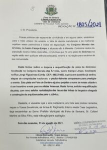 Pedro Américo indica reforma de quadra no Residencial Campo Belo