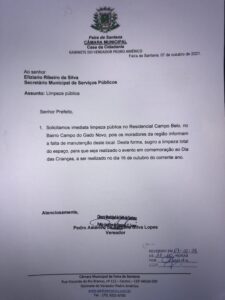 Pedro Américo solicita limpeza no residencial Campo Belo