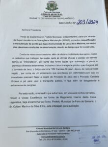 Pedro Américo solicita manutenção da ponte que liga a comunidade do Jacu até a Matinha