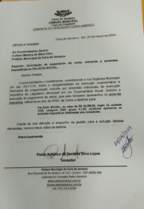 Pedro Américo solicita pagamento de verba impositivas ao Palácio Social