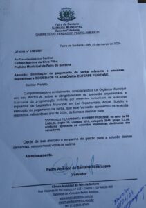 Pedro Américo solicita pagamento referente a impositivas a Euterpe Feirense