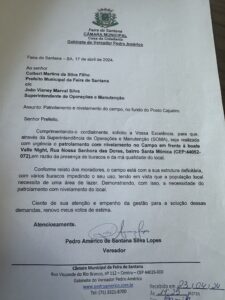Pedro Américo solicita patrolamento e nivelamento na rua Nossa Senhora das Dores