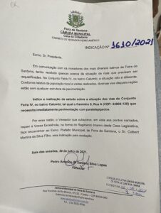 Pedro Américo solicita pavimentação na Rua A, Cam.09