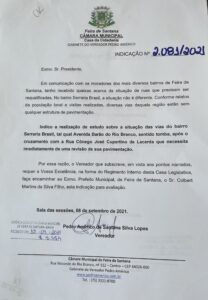 Pedro Américo solicita pavimentação nas vias Av.Barão do Rio Branco e Rua Cônego José Cupertino de Lacerda