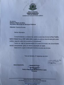 Pedro Américo indica limpeza da Praça da rua Pau Brasil