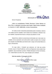 Com o objetivo de melhorar o tráfego na localidade, Vereador Pedro Américo fez indicação 1716/2021 ao prefeito Colbert Martins, para que seja realizado o reparo dos buracos no Caminho 3 C, no bairro Queimadinha.