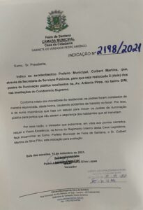 Pedro Américo solicita realocação dos postes de iluminação pública na Av.Artêmia Pires