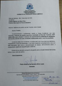 Pedro Américo solicita pavimentação asfáltica na rua Conjunto Feira VI