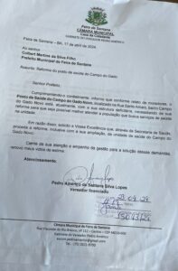 Pedro Américo solicita reforma do Posto de Saúde do Campo do Gado Novo