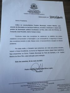 Pedro Américo solicita reparo de poste na rua João Lima de Oliveira