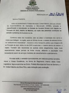 Pedro Américo solicita uma nova rota de transporte até a Comunidade Lagoa da Pedra, distrito de Maria Quitéria