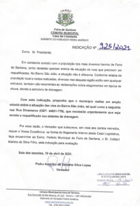 O vereador Pedro Américo, em constante contato com a população do bairro São João, solicitou à Prefeitura Municipal de Feira de Santana (indicação n°925/2021), obras de drenagem e rede de esgoto para, sobretudo, combater alagamentos recorrentes no local.