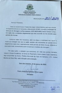 Pedro Américo solicita serviços de drenagem na rua Ipanema